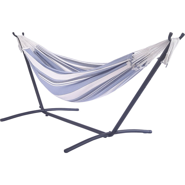 10 Ft Black Universal Steel Hammock Stand & Double Size Cloud Hammock are the perfect addition to your backyard, balcony, or patio. And with the added convenience of a sturdy stand, you can set up your hammock anywhere you want to unwind.