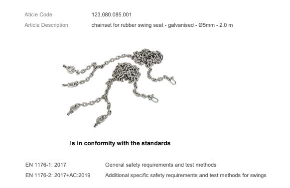 View Declaration of Conformity (SKU: 183.080.090.002) - ⛓️ Residential Standard: A cost-effective solution for home backyards, offering Ø5mm links in a 2.0m length.