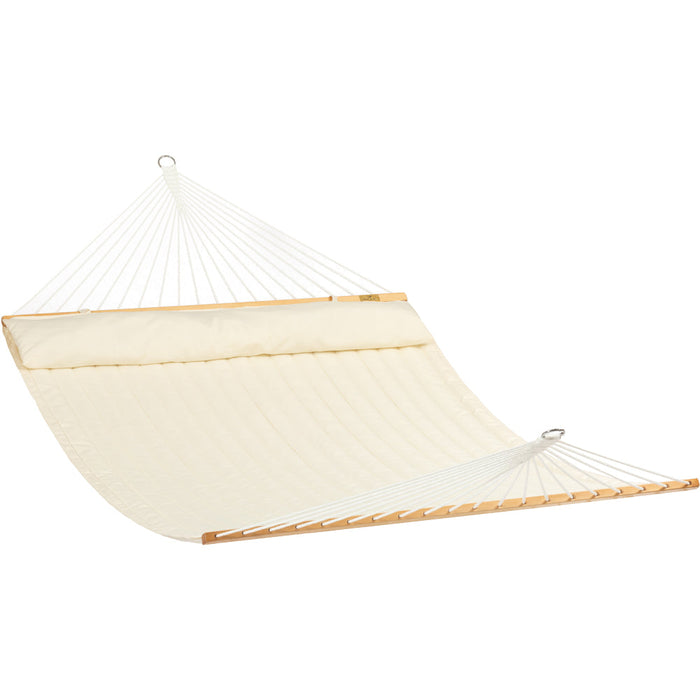 Experience a whole new level of outdoor relaxation with our King Size Cream-Colored Quilted Hammock. Designed for ultimate comfort and style, this hammock is a haven for you and a loved one to unwind.