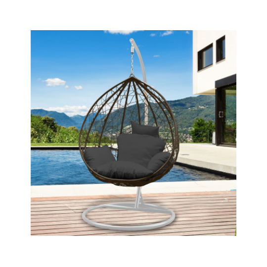 You will love the comfort and coziness of this Outdoor Rattan Egg Chair in Oatmeal and Grey Cushion.