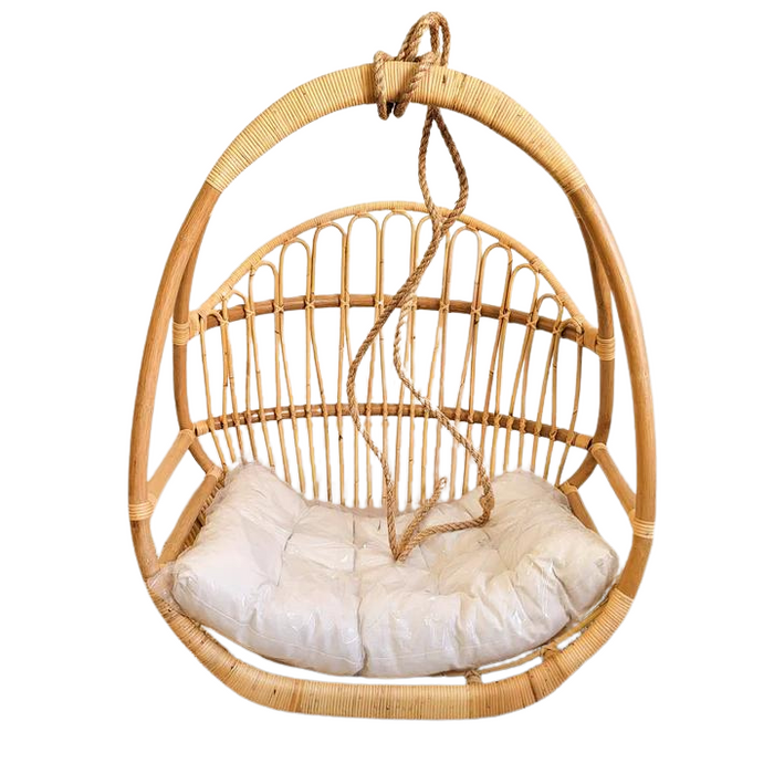 Each of our Punawai Hanging chairs is uniquely hand-made of sustainable rattan. It comes with a removable cushion and rope for hanging.