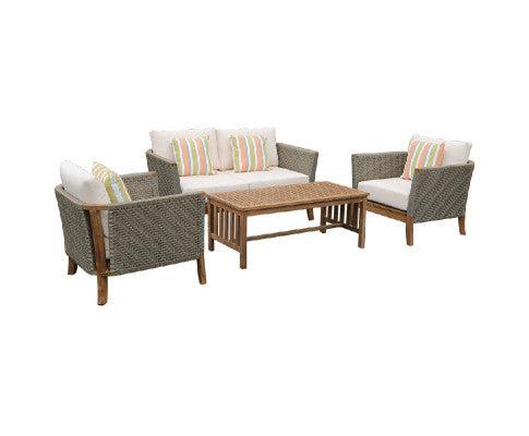 - Set includes: Two-seater sofa (150x62x67cmH), Single-seater sofa (85x62x67cmH), and a Coffee table (120x62x46cmH).