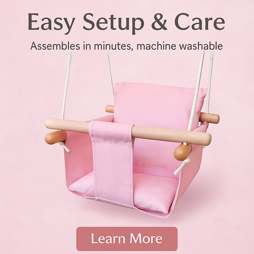 Everything you need to set up a safe and stylish toddler swing in minutes. No tools or guesswork required – just unpack, hang, and enjoy.